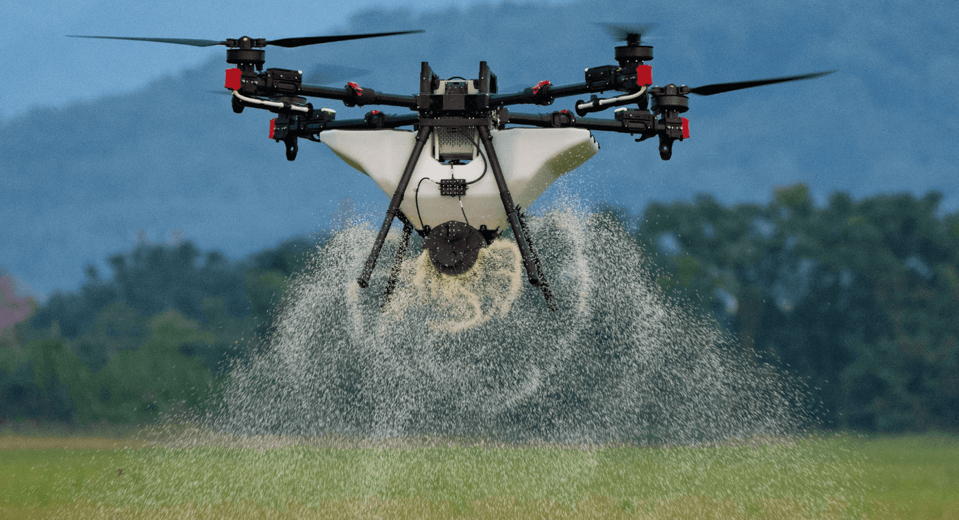 Precision drone spraying and seeding for row crops, pastures, orchards, and more